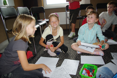 Fundacja Pro Futuro i Szkoła Pod Klonowym Listkiem organizują zajęcia językowe podczas wakacjii. Dzieci uczą sie języka przez wspólną zabawę.
