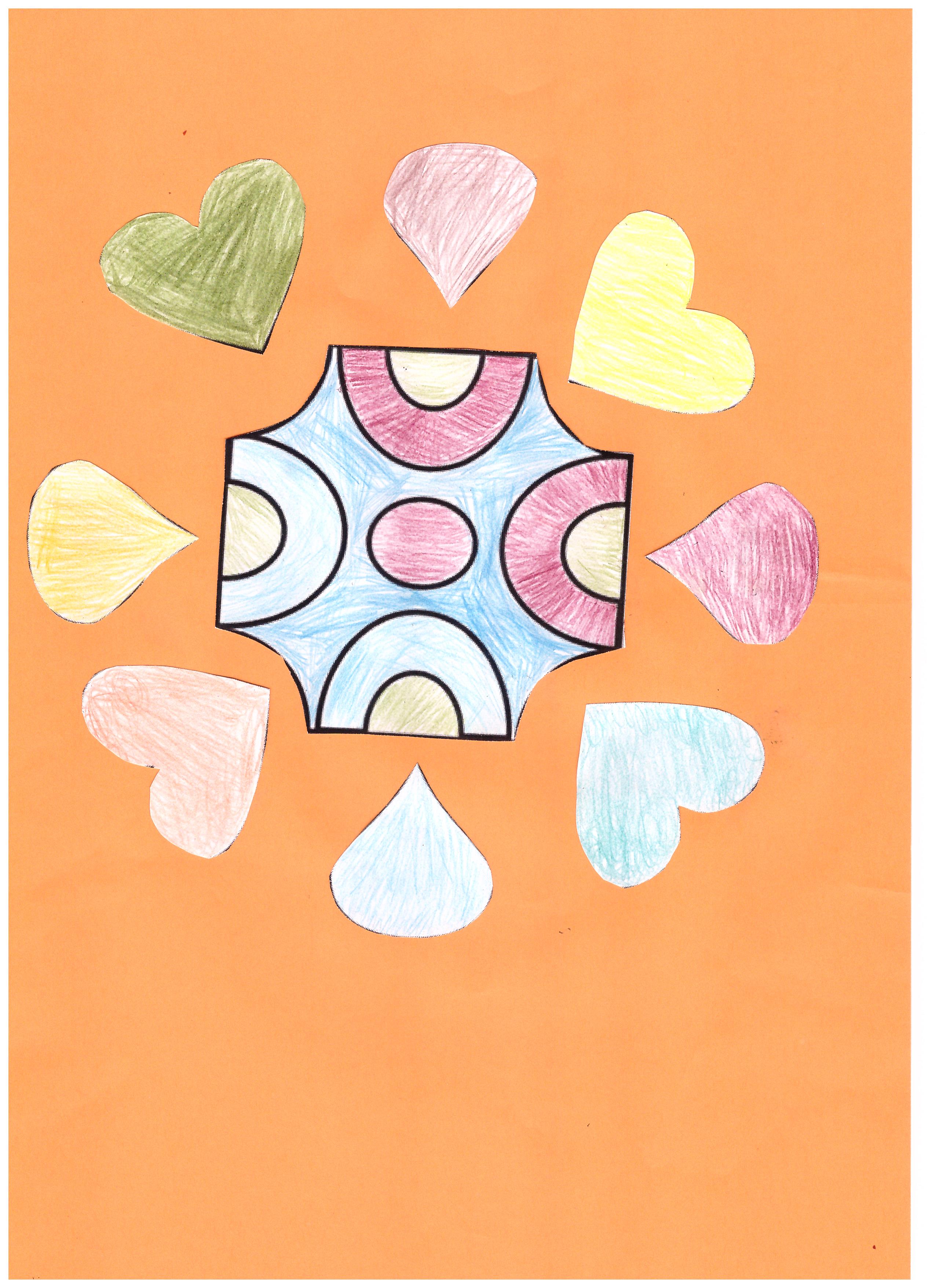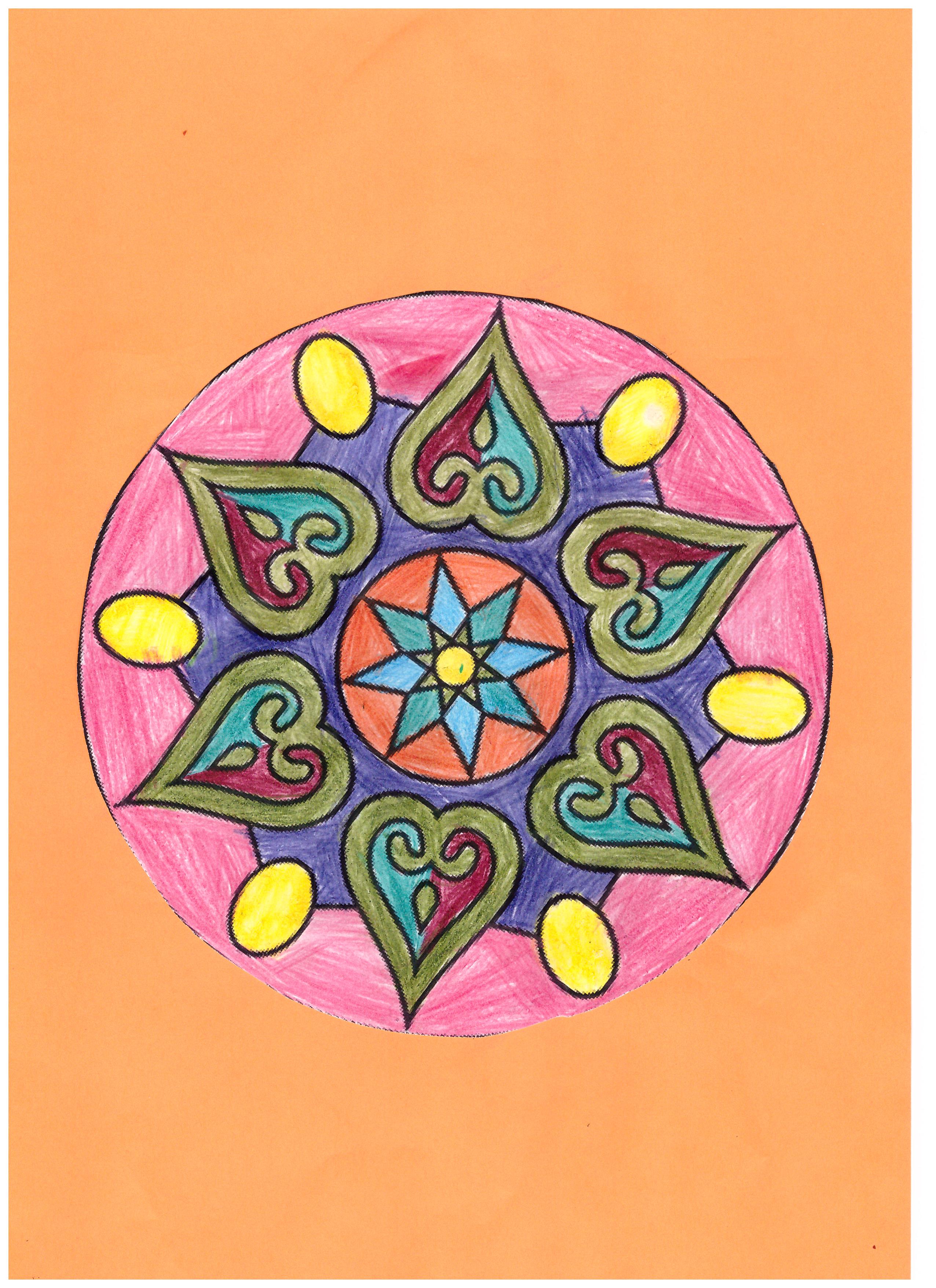 Jedną z tradycji w Indiach jest malowanie rangoli podczas festiwalu Diwali. Są one wykonywane na ulicy kolorowym pudrem i kwiatami. My wykonaliśmy takie rangoli na ulicy za pomocą kredy oraz także kolorowaliśmy je na kartkach.