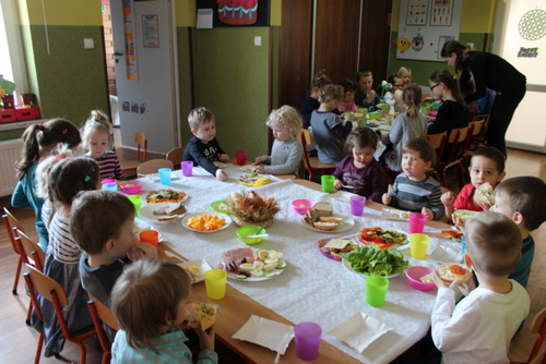 Dziś w Przedszkolu urządziliśmy sobie odświętne śniadanie wielkanocne.