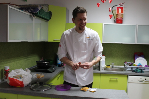 Dzisiaj odwiedził nas w przedszkolu kucharz - Pan Dariusz Zając.