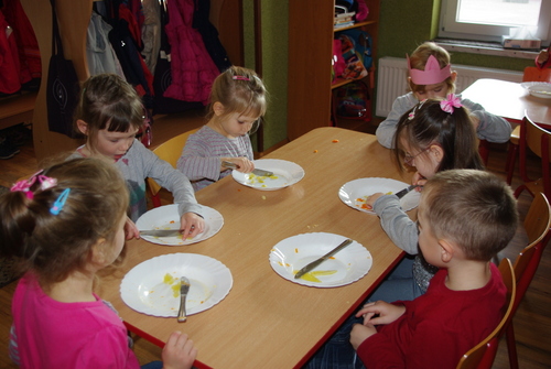 Robiąc sałatkę warzywną próbujemy różnych warzyw i poznajemy nowe smaki! Teraz każdy Przedszkolak, z drobną pomocą dorosłych, potrafi przygotować takie pyszne i zdrowe danie. |