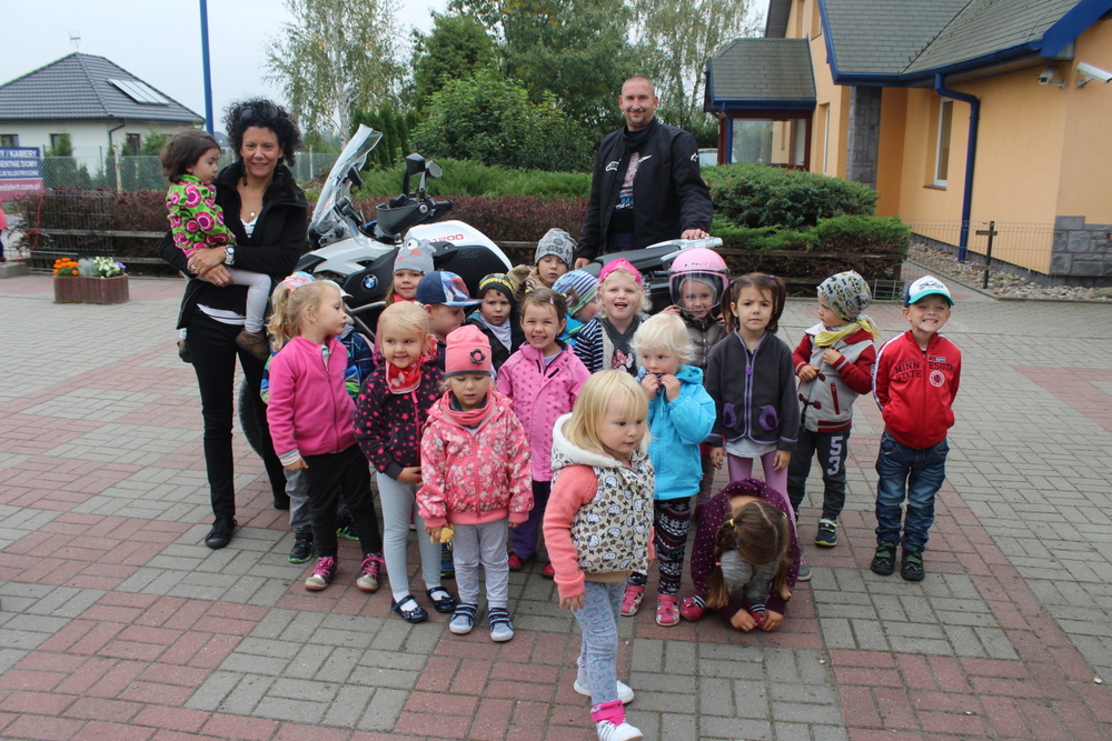 Kolejną atrakcją dnia dzisiejszego była wizyta taty Igi Mejzy- pana Łukasza. Przyjechał on do nas na ogromnym motocyklu. Zaprezentował dzieciom specjalny strój, opowiedział o bezpieczeństwie, pokazał jak motor jest zbudowany i w jaki sposób go uruchomić. Dziękujemy panu Łukaszowi za tak miłe odwiedziny.